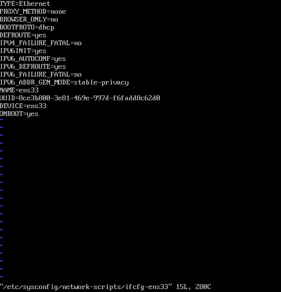 $ vi /etc/sysconfig/network-scripts/ifcfg-ens33